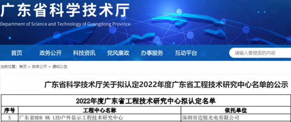 邁銳光電獲廣東省HDR 8K LED戶外顯示工程技術(shù)研究中心資格認(rèn)定
